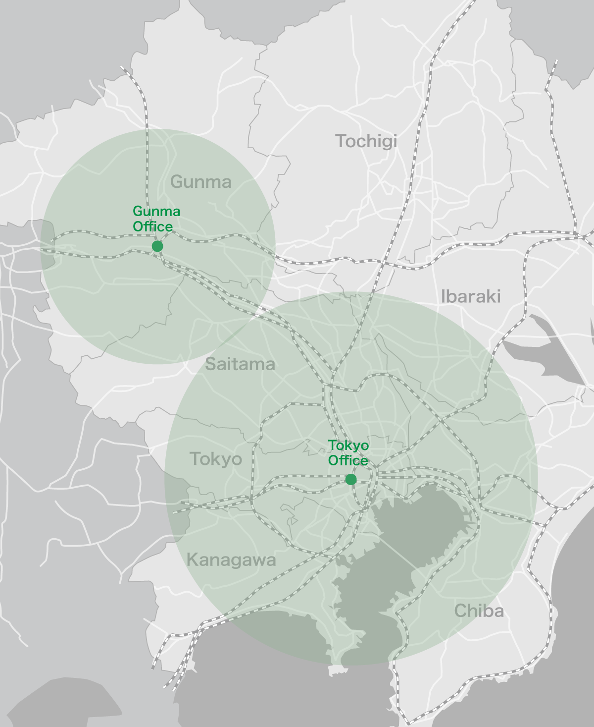 対応エリアは東京都、埼玉県、神奈川県、千葉県、群馬県を中心に、近隣地域にも柔軟に対応いたします。